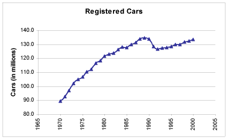 The following graphic, based on data from the US Department of Transportation, Federal Highway Administration, shows the steady growth of registered cars on our roads from 1970-2000. We believe that the dip following 1990 was a direct consequence of the Clean Air Act of 1990 which raised the federal automotive emission standards. Many accidents on our roads and highways are a direct result of glare affecting a driver's field of vision. If even a small percentage of the 11,000,000 windshields damaged yearly in the U.S. were a result of preventable accidents precipitated by glare, then we should be able to reduce the amount of non-biodegradable safety glass in our landfills.