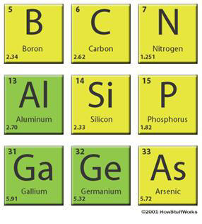Photonic crystals can be made of silicon or the elements surrounding it on the periodic table, as shown in this diagram.