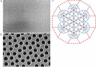 When Fig. 4, photonic crystals are viewed from the top, the view is as shown in Fig. 5 below. Note the symmetry of C; the lattice is symmetrical, and thus uniform over the entire sheet.