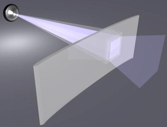 Image courtesy of Sean B.Looking at the next diagram one sees the headlight of an oncoming car reaching a windshield treated with a moth-eye grating on the inside of the windshield. The intensity of the headlamp's beam is diffused so that the driver would no longer be blinded by the beam. In essence, we are dispersing the intensity over a larger area to reduce the level of intensity that strikes the eye.
