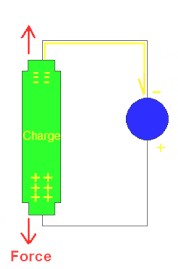 effect a neutral charge. When a force is applied to the piezoelectric material and