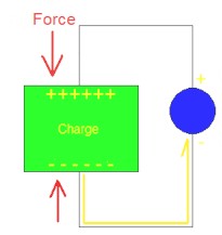 Adding a force to the material (like squeezing it), will create an electrical current, while pulling it apart, or releasing the stress, creates a current in the opposite direction. The fact that these materials can produce currents in two different directions is a characteristic unique to piezoelectrics.