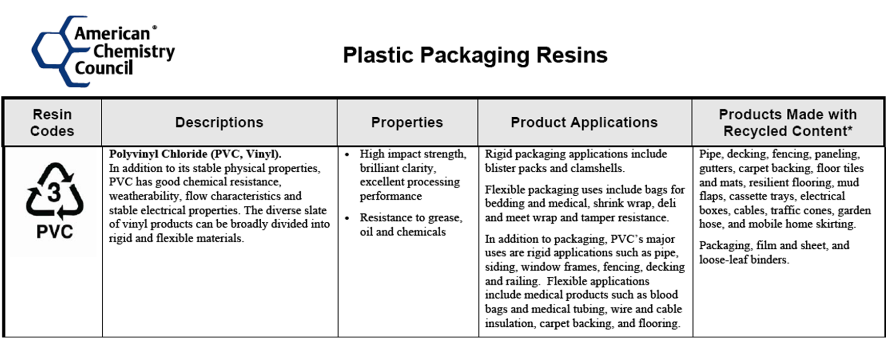 Polyvinylchloride (PVC) is known for it's stable physical properties, which then leads to the application we all know it as: piping. |