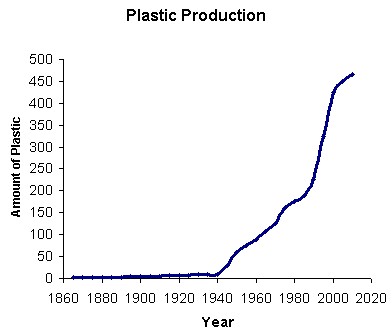 The growth of the production of plastic since its initial creation in 1868 has been