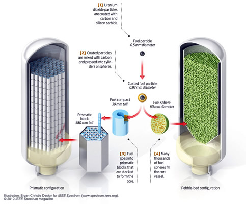 its Reactors. The TRISO particles are contained in blocks or spheres which also