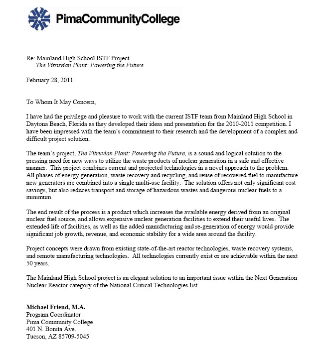 At the end of project, we received this letter from our techical adviser. The team was elated when they read his assessment of our work.