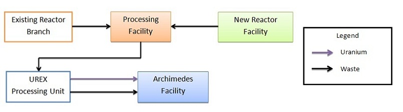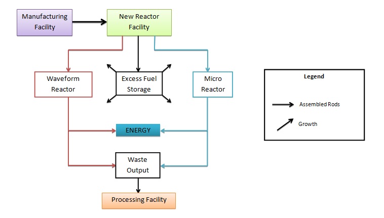 The Existing Reactor Branch ultimately is an addition to the GRNR cycle through a reactor that already exists. Our plant could be built on the same site as this reactor and would feed off the waste generated by this reactor. The Existing Facility provides pre-constructed storage and cooling facilities for our plant. The Existing Facility can be phased out over time to help bring current reactors into the future.